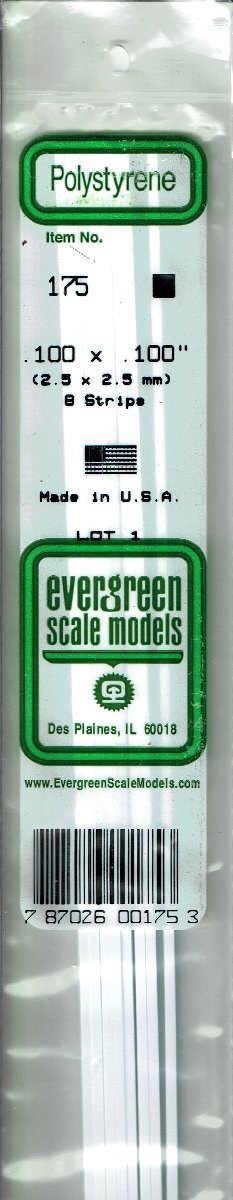 - エバーグリーン .100x.100 プラ棒 2.5x2.5mm 8本入り