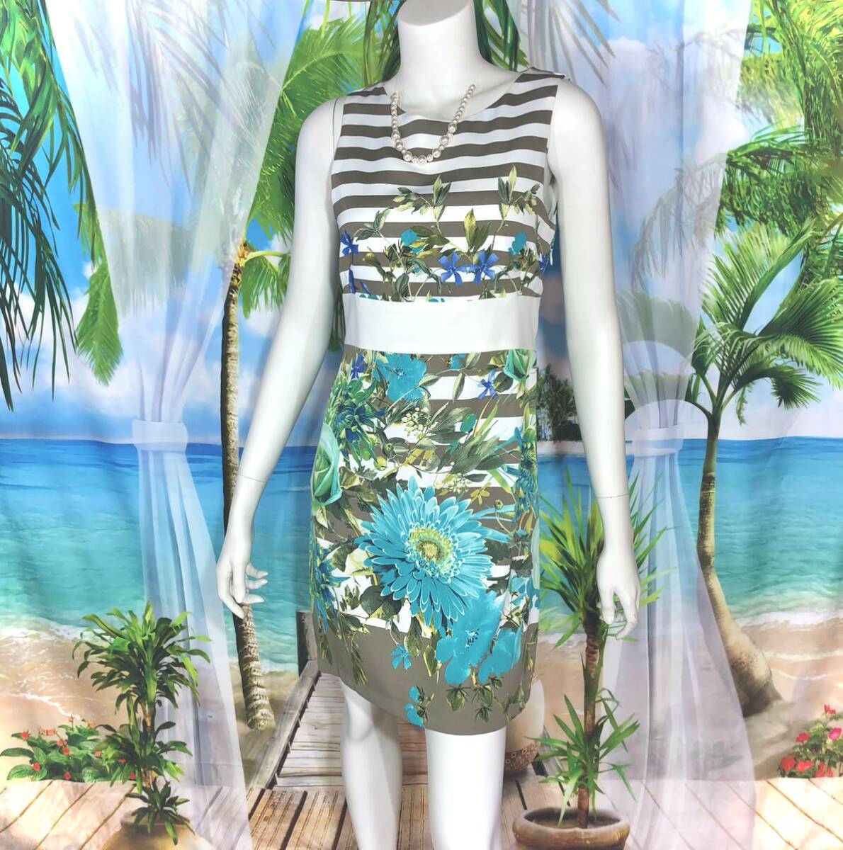 - rinascimento ターコイズ マリンフラワー サマーワンピース XXS