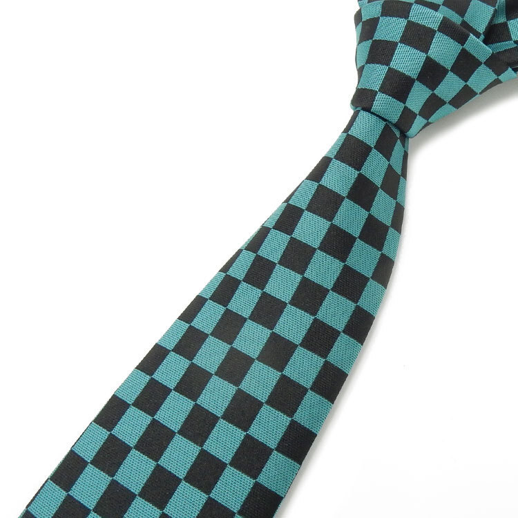 - 日本製ネクタイ 緑×黒 市松模様/チェッカー柄 甲州織 洗濯機OK メール便OK EVT06-GR