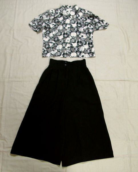 - ■美品:グレー系薄手メッシュシャツと黒バギーパンツ M DmM34