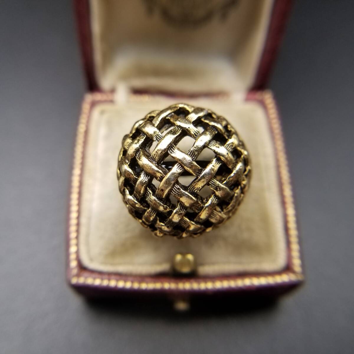 - 編み込み クロス デザイン ラウンド フォルム 透かし ボリューミー ゴールドトーン ヴィンテージ リング 指輪 ジュエリー 輸入 Y17-A