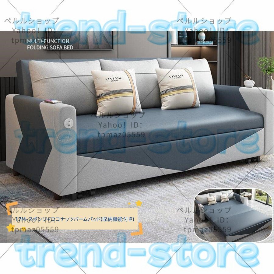 - 折り畳み式ソファベッド ベッド スポンジ/ラテックス/ココナッツパームクッション 1.7M-スポンジ+ココナッツパームパッド(収納機能付き)