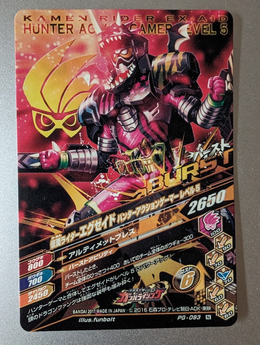 - 仮面ライダーエグゼイド ハンターアクションゲーマーレベル5/バーガーアクションゲーマーレベル4 _ガンバライジング カード