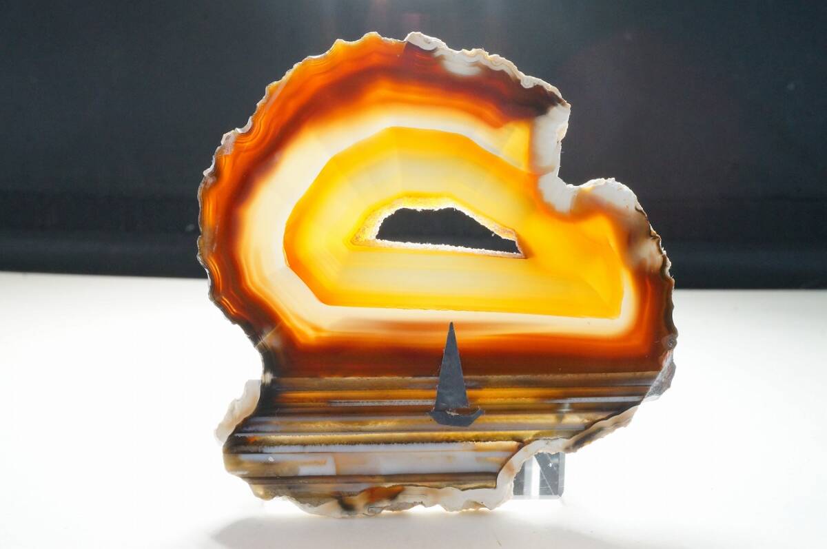 - 希少!昔の在庫なので上質!縞模様が綺麗な上質ブラジル産瑪瑙・メノウ・めのう・メノー・ピクチャーメノー板原石&シルバー製ヨット