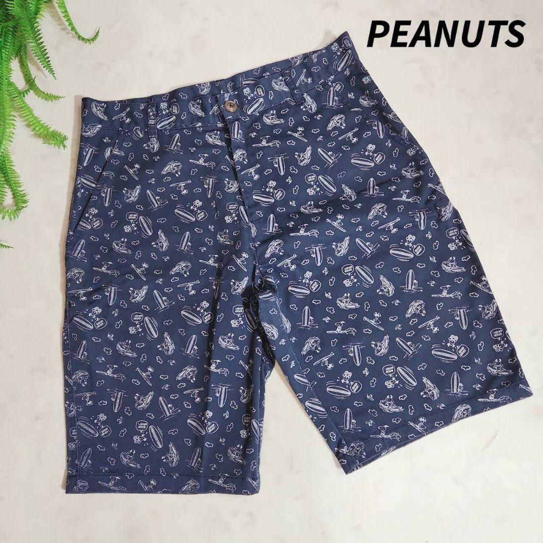 - PEANUTS スヌーピー・イラスト総柄・コットンツイル・ハーフパンツ M ネイビー68428