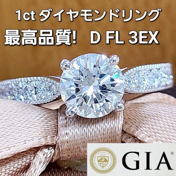 > 【製造大卸☆最安値】完全無傷 無色 無欠点 1ct D FL 3EX 天然 ダイヤモンド プラチナ PT900 リング 指輪 【GIA鑑定書付】