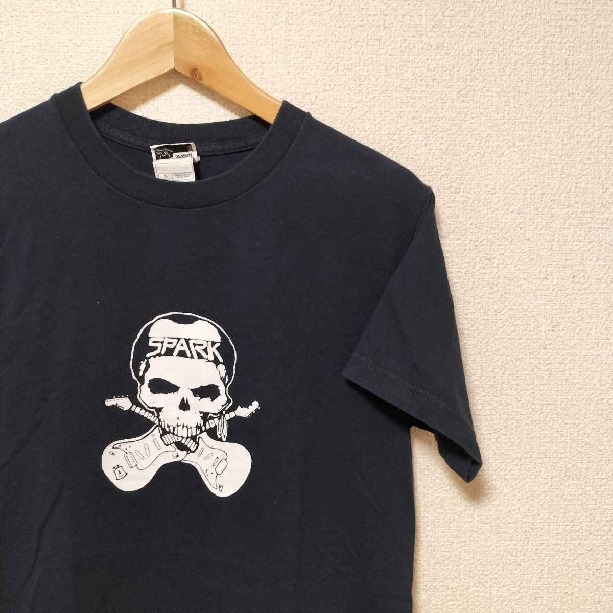 > 美品☆HAWAII SPARK 半袖 Tシャツ スカル ドクロ ギター イナズマ 両面プリント 紺 ヴィンテージ オールド ハワイ スパーク 希少 古着 USED