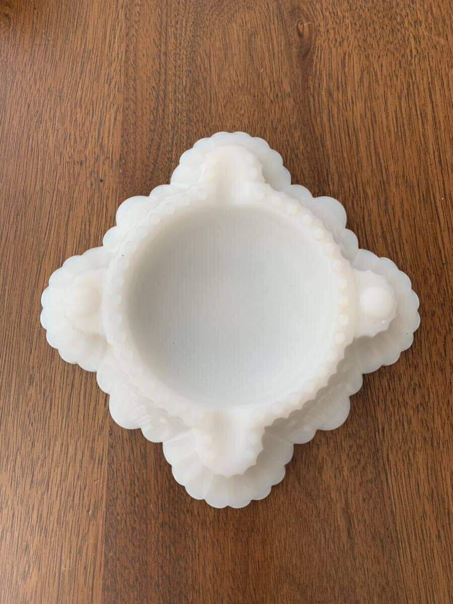 - 【レア】フランス購入 オパルーセントガラス ヴィンテージ ロココ調 トレイ 灰皿 レア 珍品 マット加工 ミルクガラス 骨董 アンティーク
