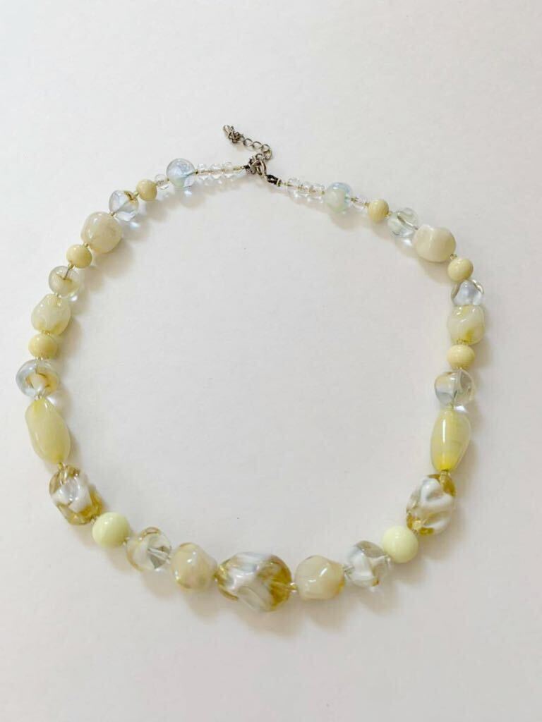 - 【美品】ヴィンテージ ガラス ネックレス イエロー 系 クリア ウランガラス ヴェネチアンガラス? ハンドメイド 手作りガラス トンボ玉