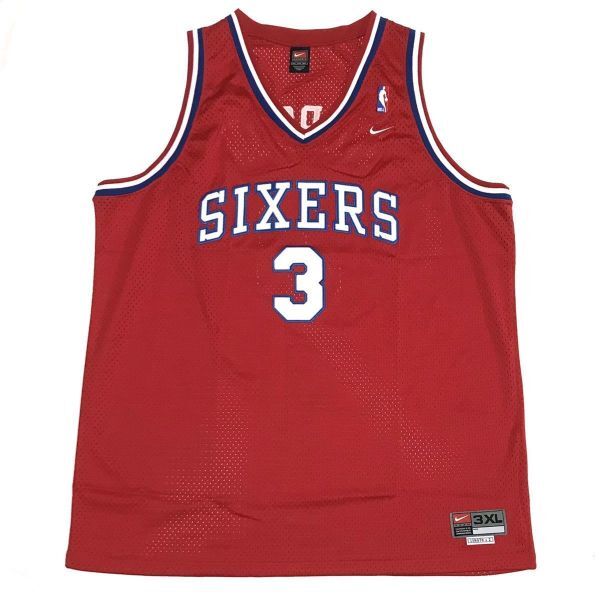 > 【デッドストック】00s NIKE ナイキ NBA 76ers セブンティシクサーズ アレンアイバーソン ユニフォーム メンズ3XL 赤 バスケ シャツ 新品