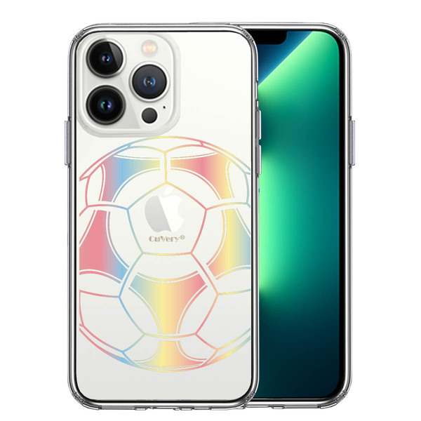> iPhone13Pro ケース クリアサッカーボール カラー スマホケース 側面ソフト 背面ハード ハイブリッド