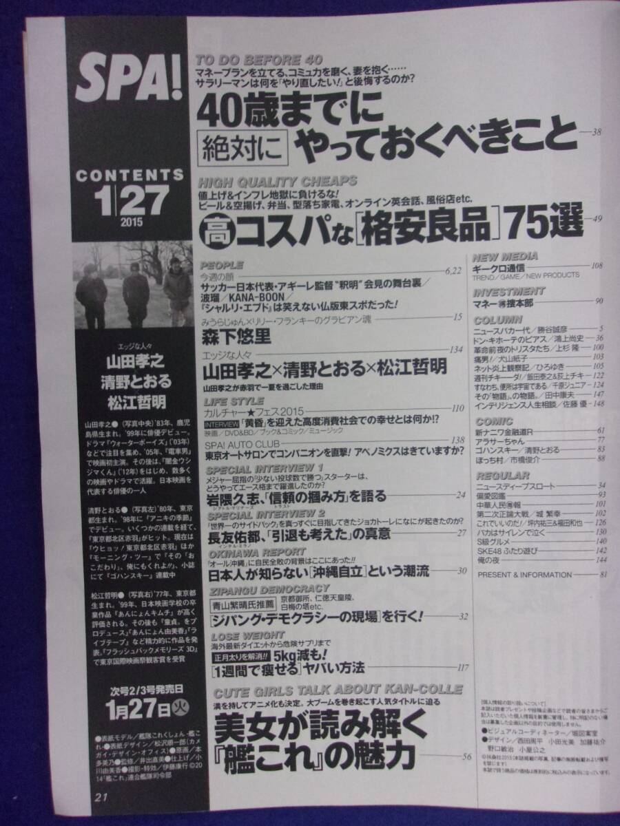 - 3030 SPA!スパ 2015年1/27号 森下悠里 ※イタミ有り※ ★送料1冊150円3冊まで180円★