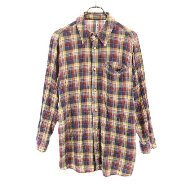 > グラム 日本製 長袖 シワ加工 ガーゼ生地 チェックシャツ 1 glamb メンズ