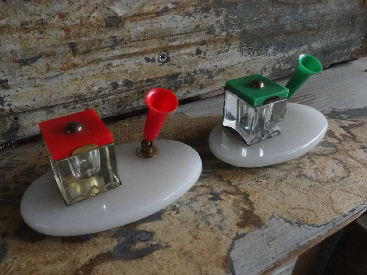 - 【古いガラス製のインク壺2対セット】ペン立て昭和レトロインテリアインク瓶ドライフラワー万年筆インダストリアル古道具アンティーク文具