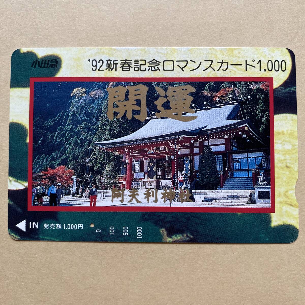 - 【使用済】 ロマンスカード 小田急電鉄 92新春記念 開運 阿夫利神社