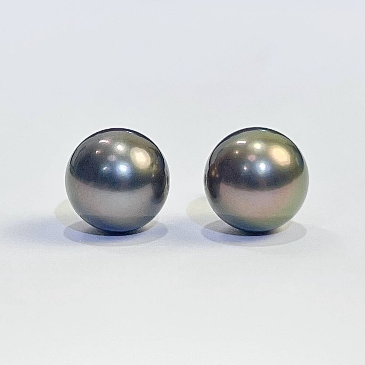 - K14WG 黒蝶 タヒチ ブラックパール ピアス レディース アクセサリー 本真珠 未使用品