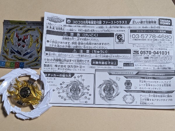 - 未使用 ベイブレードバーストコロコロ 8月号限定付録 ファーストウラヌス コロコロコミック タカラトミー