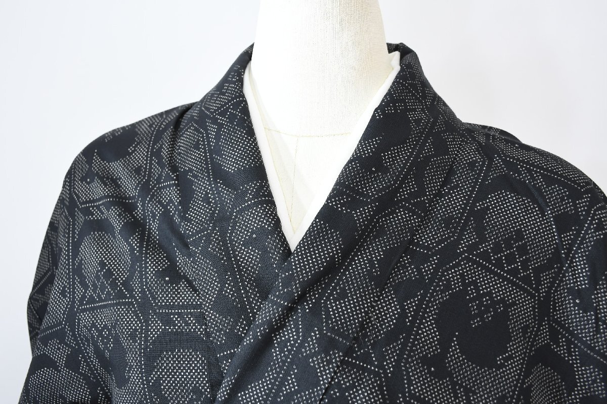 - 大島紬 有栖川文様 正絹 市松並び 身丈154cm 裄丈64cm ★着物 pb-2894 桜庭呉服店