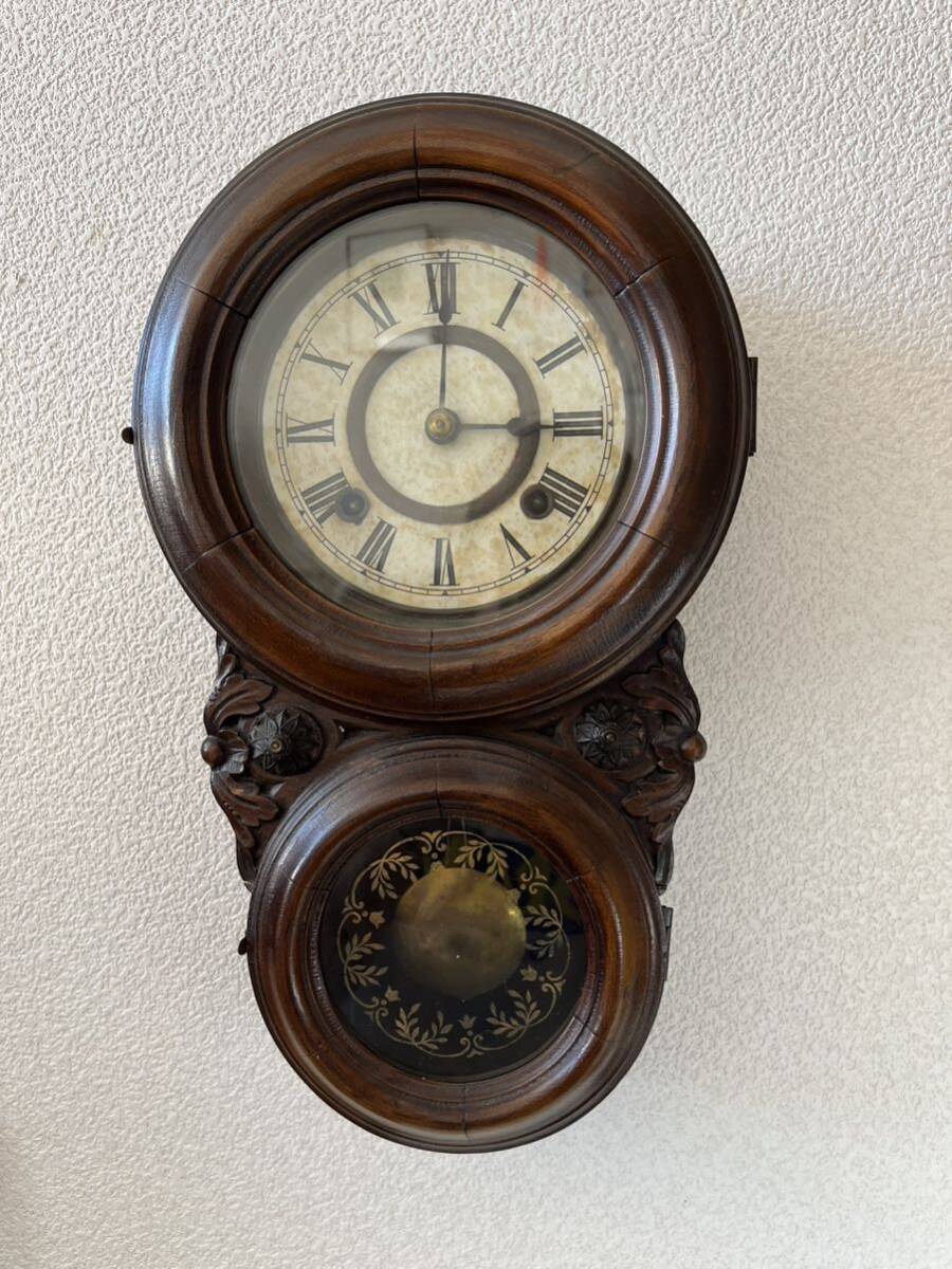 - 精工舎 SEIKOSHA 姫達磨時計 古時計 壁掛け時計 柱時計 古時計 振り子 ゼンマイ時計 木彫り アンティーク コレクション