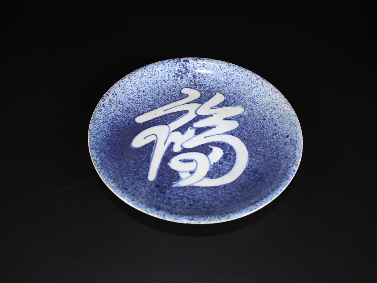 - 本物保証 北大路魯山人 吹墨福字 飾り皿 本物返品OK 保存箱 美品 2407−13−1