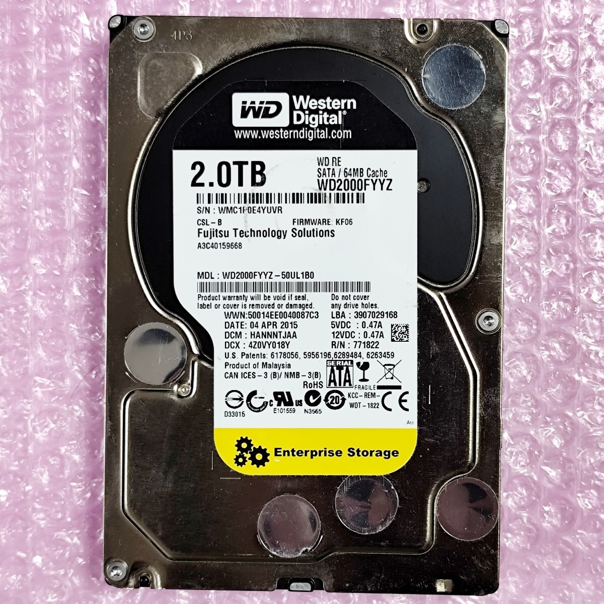 - 【正常判定】Western Digital エンタープライズ向けHDD 2TB / 3.5インチ SATA HDD / WD2000FYYZ (使用時間/65570時間)