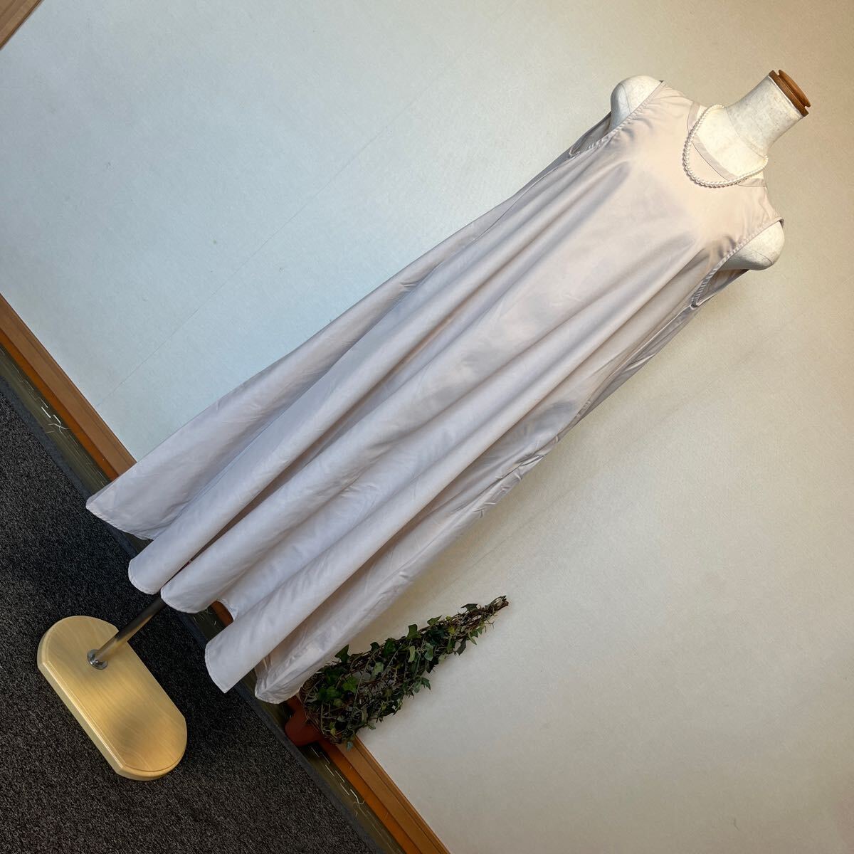 - 9-6新品ノースリーブバックリボンボリュームフレアースカートロング丈Aラインワンピース アイボリー S 7号