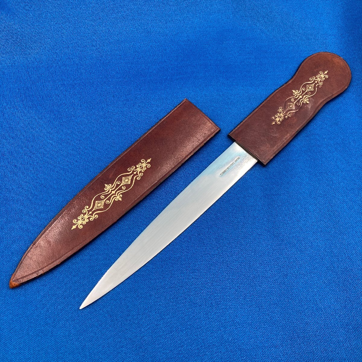 - 【11749P083】ペーパーナイフ レザー 革鞘 レターオープナー レザーケース 革ケース付き ブラウン ステンレス製 紙切 文房具 書斎 レトロ