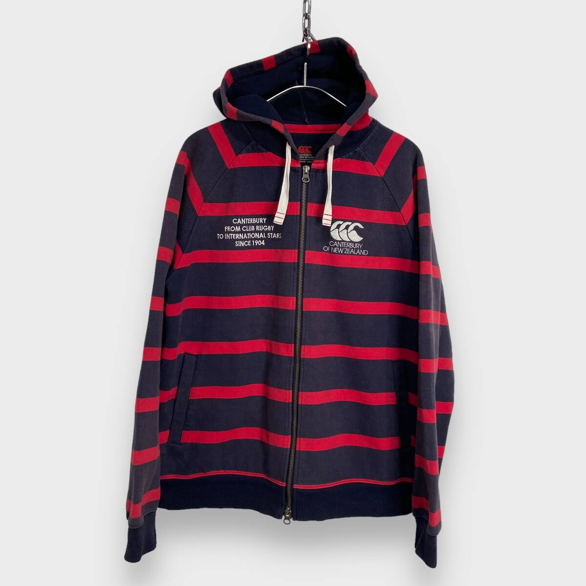 - 送料無料☆CANTERBURY☆カンタベリーオブニュージーランド☆ボーダー柄ジップパーカー☆内フリース☆レッド☆ネイビー☆L☆G24M
