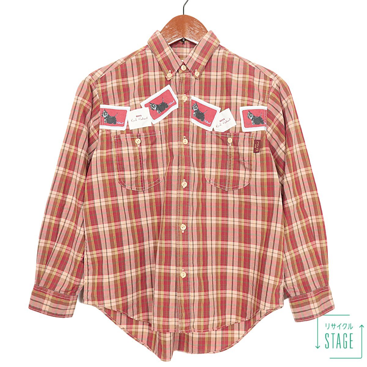 > カールヘルムボーイズ★レア!長袖シャツ ボタンダウン チェック&ワッペン♪ レターパック可 サイズL 赤系 z8341