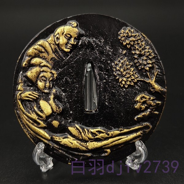 - SY191 日本刀装具 刀鍔 歌舞伎図 合金製 現代品 つば ツバ 刀剣美術 重さ約140G 厚さ約4mm