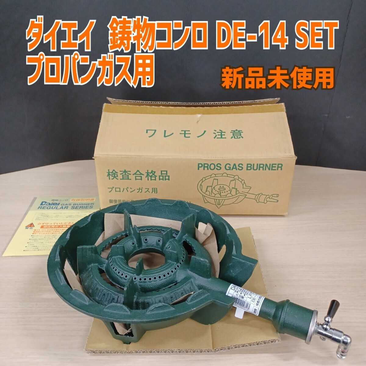 - 石) ③【未使用保管品】 Daiei ダイエイ ガスコンロ 鋳物コンロ DE-14 SET プロパンガス用 LPガス 一重型 大 グリーン 業務用 240718 D1-3