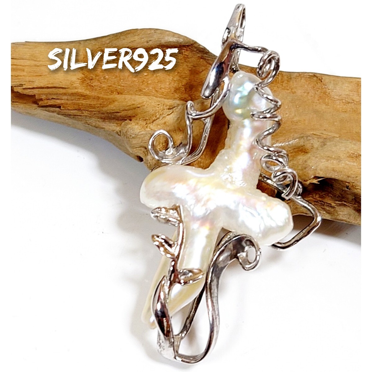 > 6055 SILVER925 バロックパールクロストップ シルバー925 天然 真珠 十字架 ハンドメイド 1点物 希少 レア 手作り シンプル ユニセックス