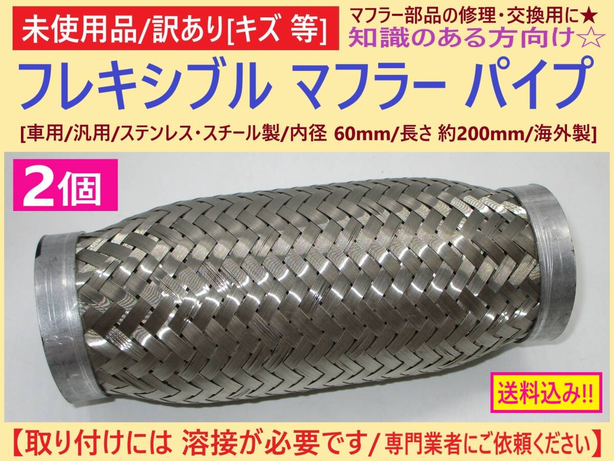 - 訳あり 未使用 フレキシブル パイプ マフラー 2個 A 内径 60mm 長さ 200mm ステンレス製 汎用 車 自動車 交換 補修 部品 知識のある方向け