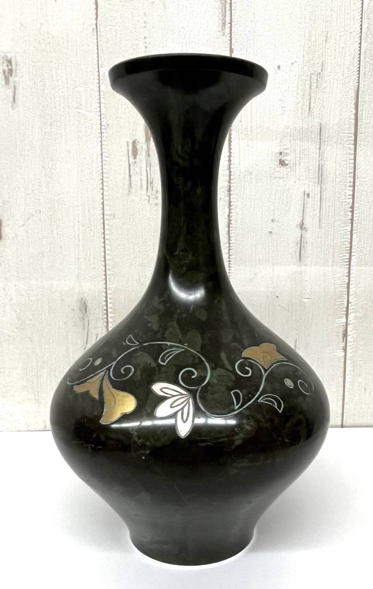 - 伝統工芸 工芸品 工芸美術 *鋳銅 カブラ型 唐草文 高岡銅器 斑柄 緑 *花瓶 花入 花生 一輪挿し 飾壺 *茶道具 茶器 花道具 金属工芸