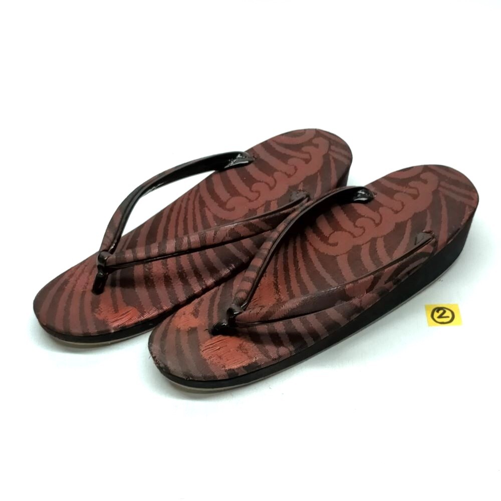 - ② 草履 赤 黒 モダン 和装 着物 小物 レディース ぞうり 履物 女性用 中古