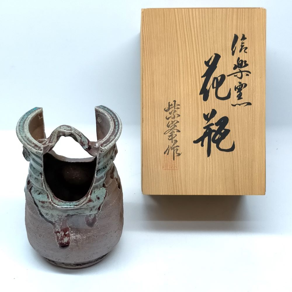 - 信楽窯 紫峯作 花瓶 瀬戸物 焼物 信楽 花器 壺 フラワーベース 和