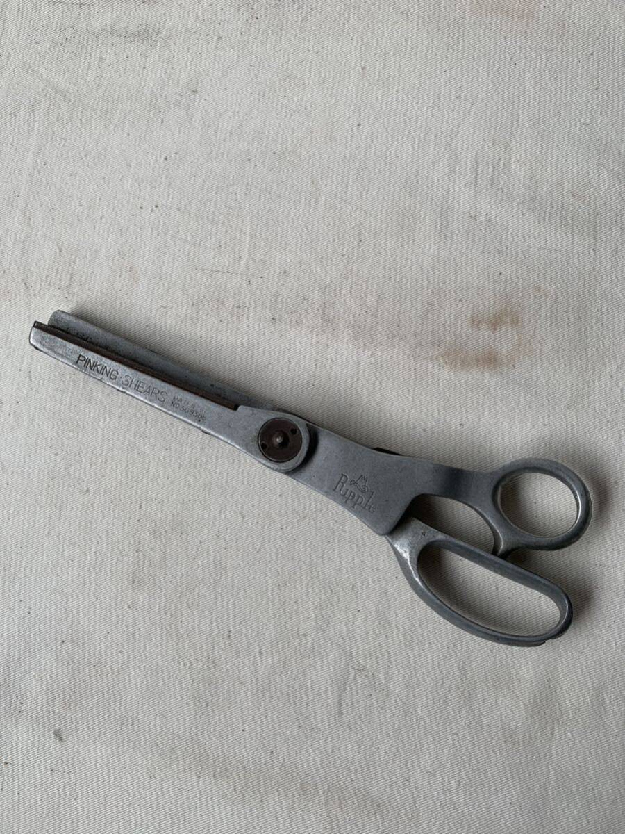 - 古い洋裁店で使われていた古いアルミ製ピンキング鋏 裁ちバサミ裁断道具裁縫古道具珍品店舗什器アンティークビンテージコレクションレトロ