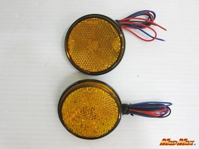 - MADMAX 汎用 LED丸型リフレクター 12V オレンジ 2個セット/反射板 乗用車 バイク 原付 軽自動車 軽トラック等【メール便送料210円】
