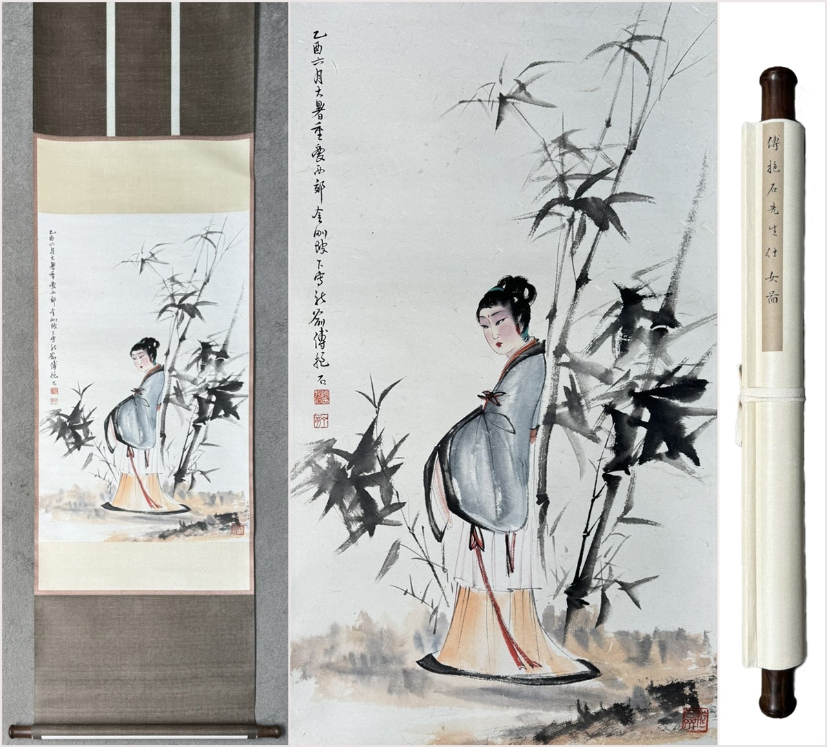 - 古美術 掛け軸 中国・近現代 「傅抱石書」 紙本 【仕女図】 立軸 書道 巻き物 真筆逸品 肉筆保証 唐物 古画 LT-240790