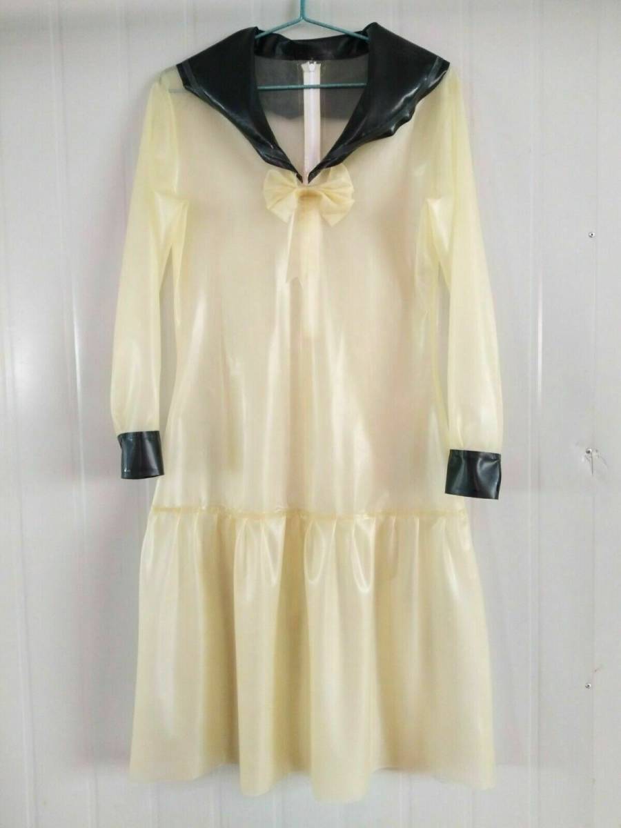 - レディース 100%ラテックス ラバー ドレス フリル 透明 黒 クリア ワンピース コスプレ コスチューム 衣装 女性 服 XS-XXLサイズ:po84