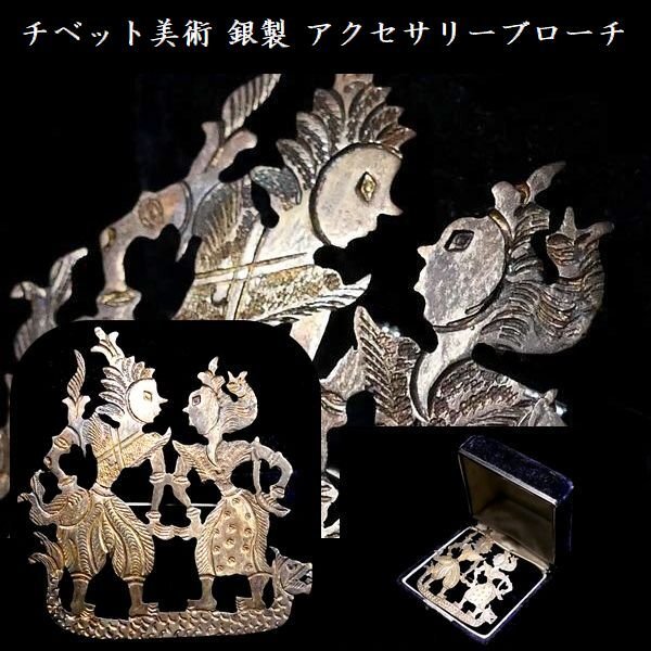 【 恵 #1244 】 チベット美術 繊細な細工の見栄え良き一品です 銀製 ブローチ アクセサリー 保管箱付き拍卖