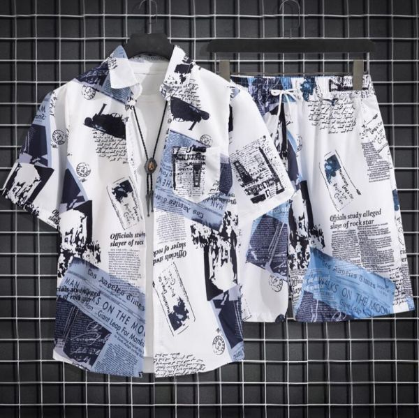 > 人気推薦 ジャージメンズ上下セットアップスウェット花柄半袖シャツ ハーフパンツ トレーナー部屋着ルームウェア 大きいサイズ ホワイト