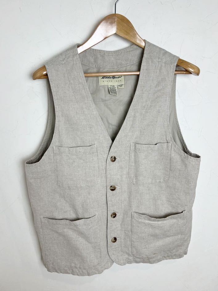 > 90’s Eddie Bauer エディバウアー リネンベスト 白タグ 4ポケット アウトドア ストリート