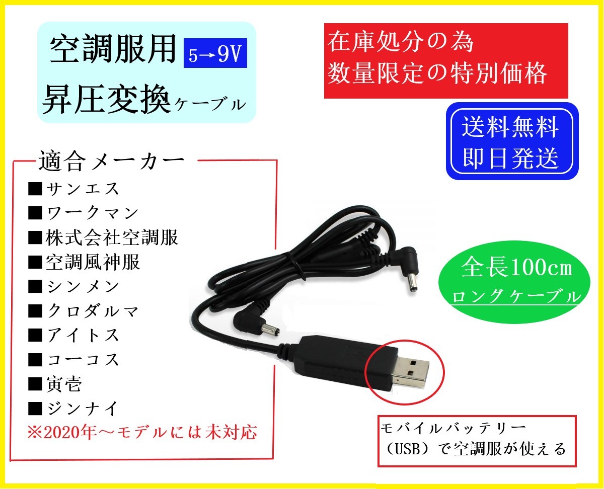 - 【在庫処分/特別価格】 空調服用 昇圧 USB変換 ロングケーブル 5V→9V サンエス ワークマン クロダルマ シンメン ディッキーズ 寅壱 ②