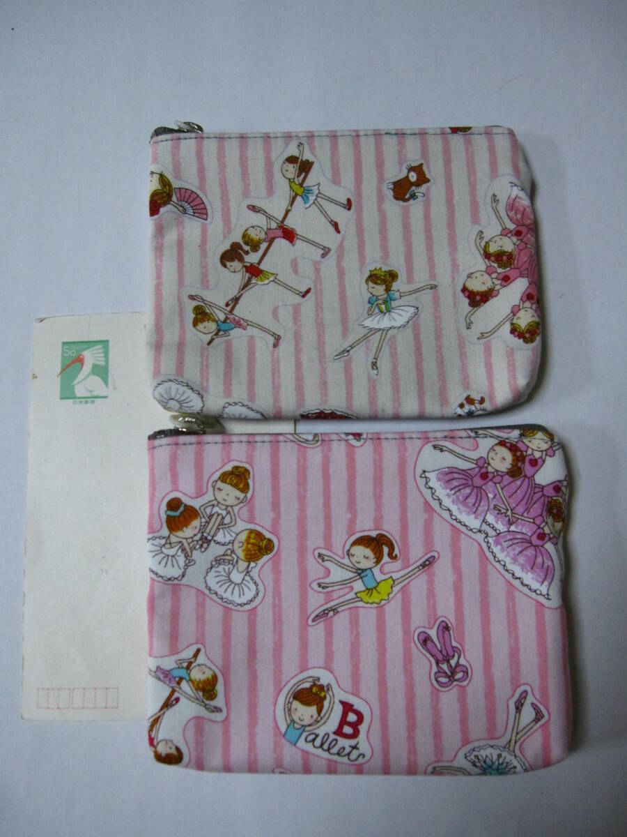 - 手作り 小物 ポーチ 2点 バレエ柄 バレリーナ 模様 ライン ハンドメイド 財布 セット 兼用 キュート チュチュ トゥシューズ 柄 可愛 お洒落