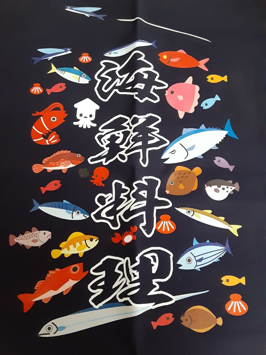 - ☆前掛け☆エプロン☆海鮮料理☆魚柄☆レトロ☆魚群☆居酒屋☆海鮮屋☆