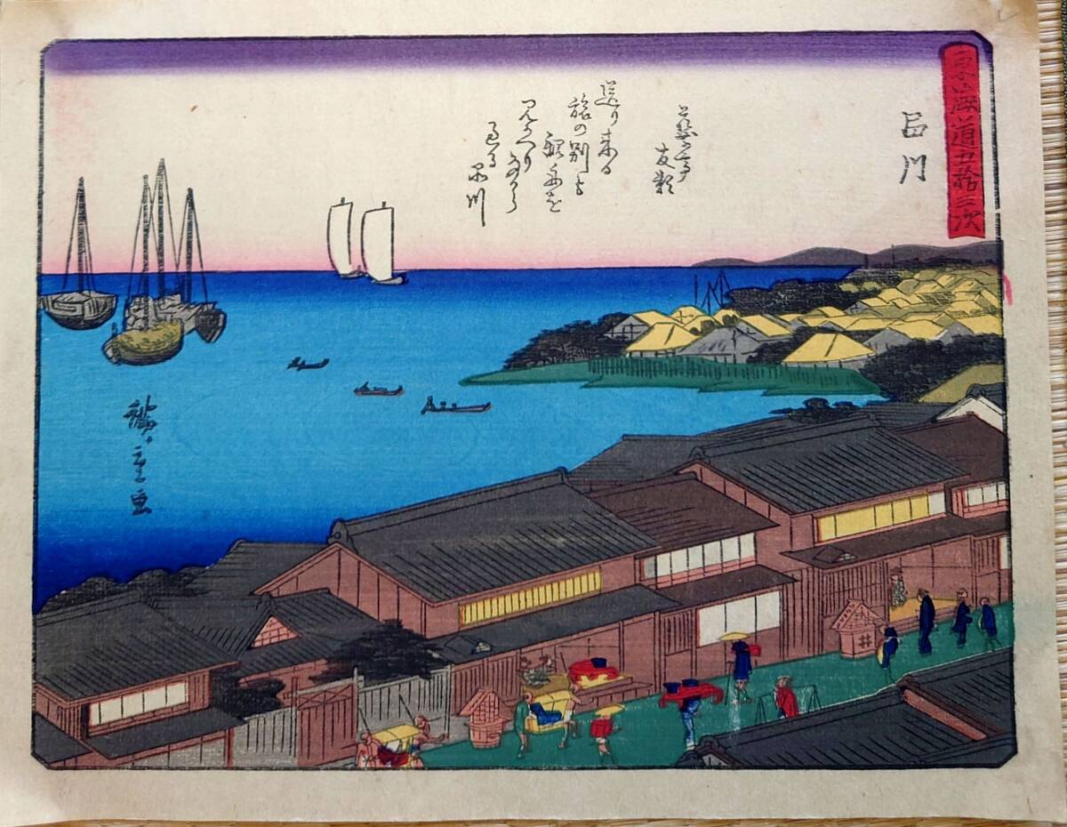 - f24040402〇彩色木版画 佐野喜版 狂歌入東海道五十三次 品川宿 広重 複刻昭和年代〇和本古書古文書