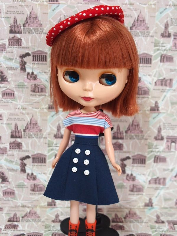 > Doll Dressing*ハンドメイド ペッパーちゃん/ブライスお洋服セット人形/アウトフィット衣装/ドレス/Tシャツ/ドール服/スカート/レトロ/帽子