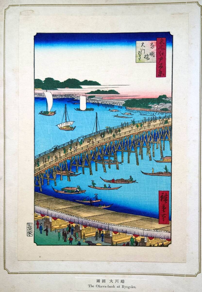 - f24080054〇名所江戸百景 彩色木版画 浮世絵 歌川広重 両国橋大川ばた 複刻昭和年代〇和本古書古文書