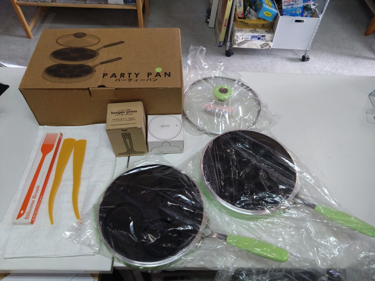 - ● アサヒ軽金属 パーティーパン ボウル/フラット フライパン ガラス蓋/バーガープレス/ピック/ターナー/シリコン蓋 付 未使用品 有/美品③